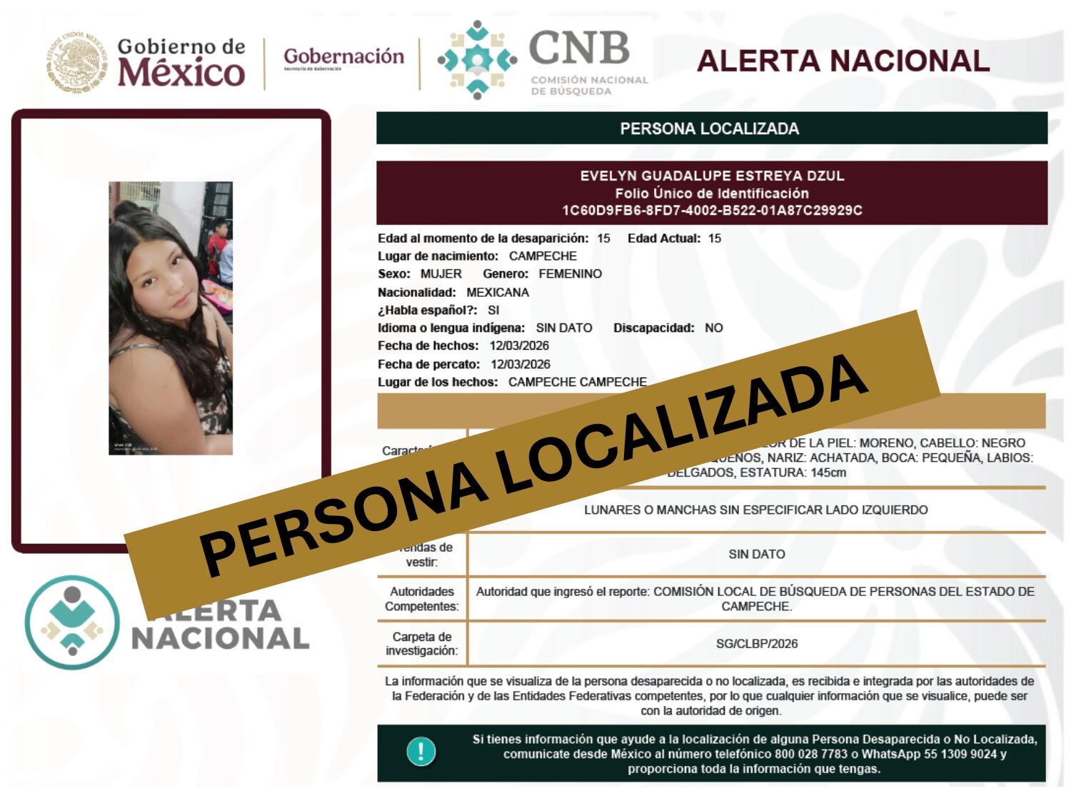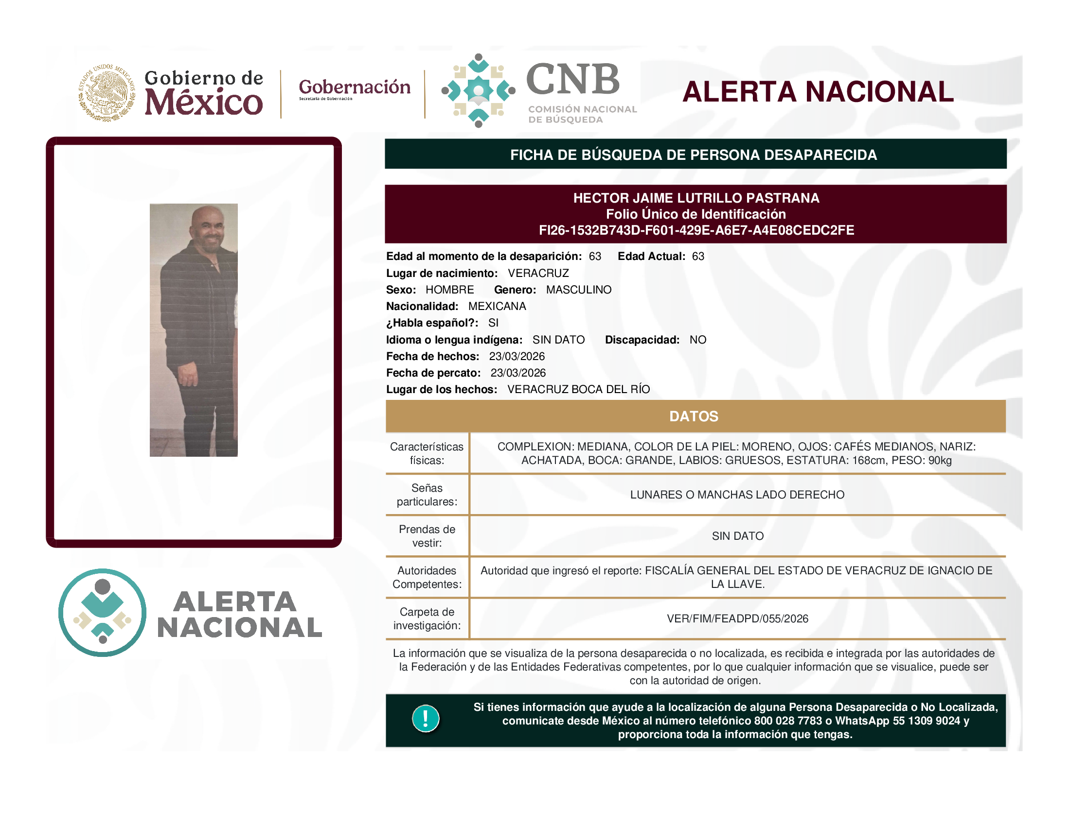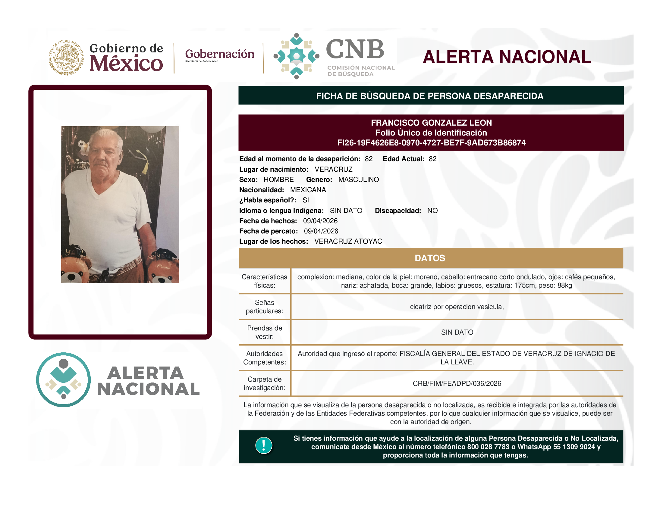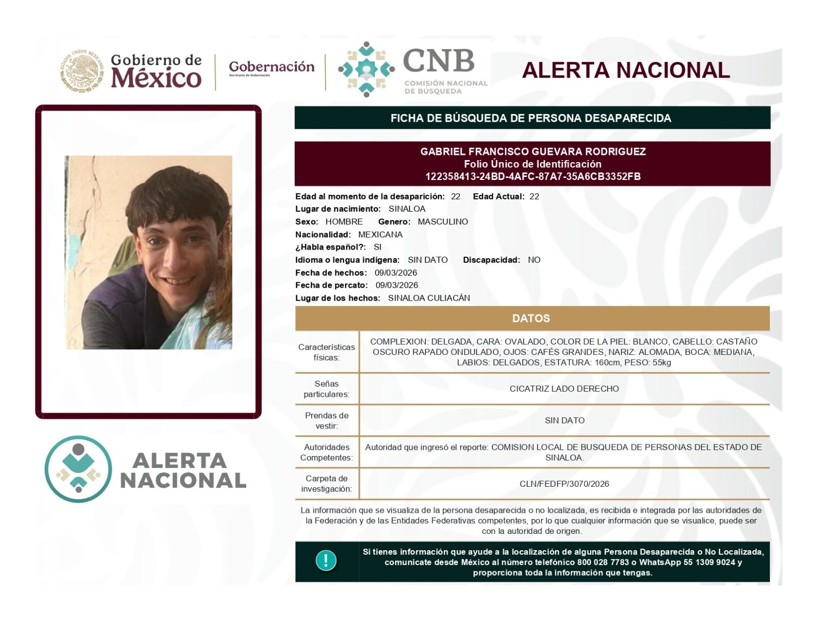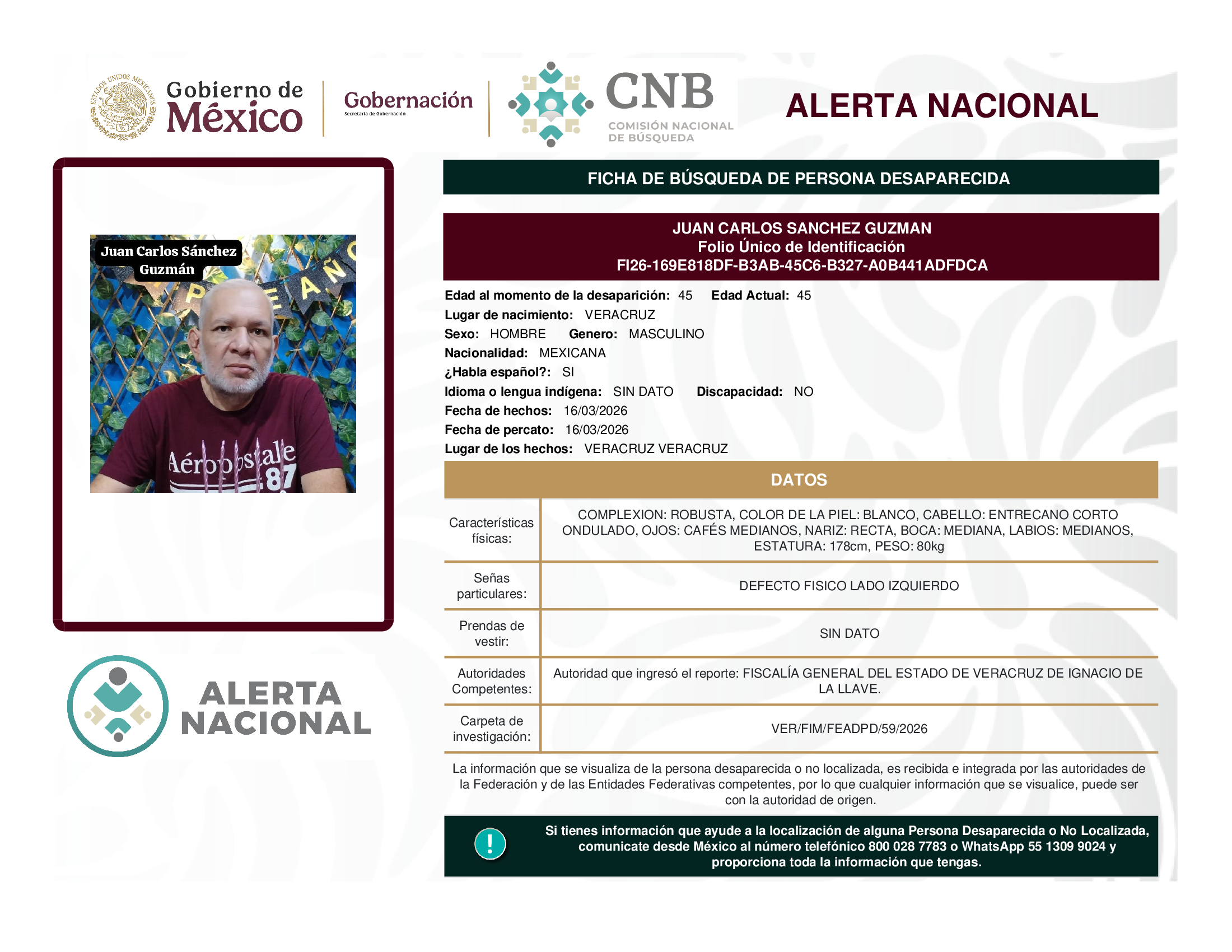 ALERTA NACIONAL DE BÚSQUEDA, LOCALIZACIÓN E IDENTIFICACIÓN DE PERSONAS DESAPARECIDAS Y NO LOCALIZADAS