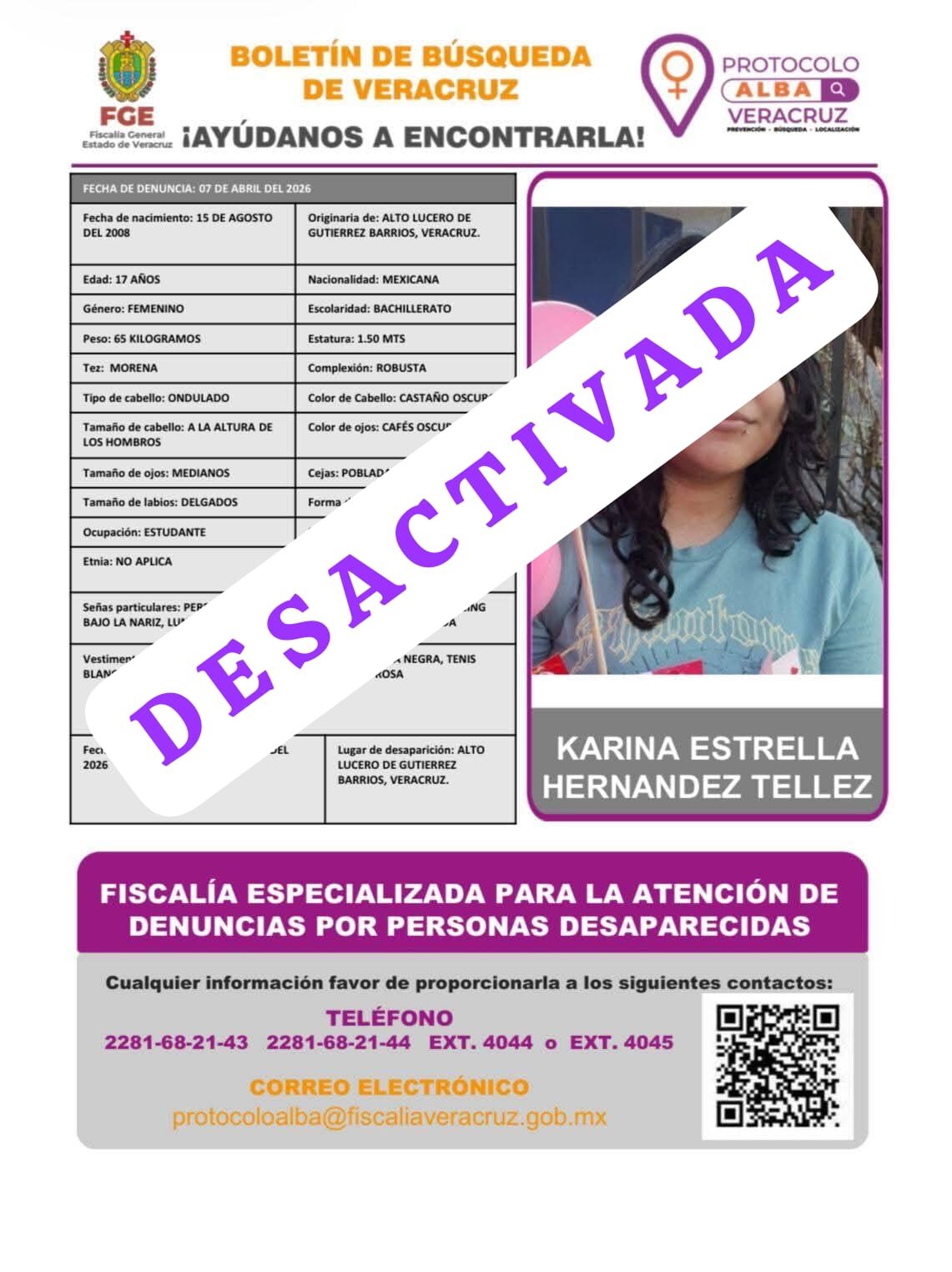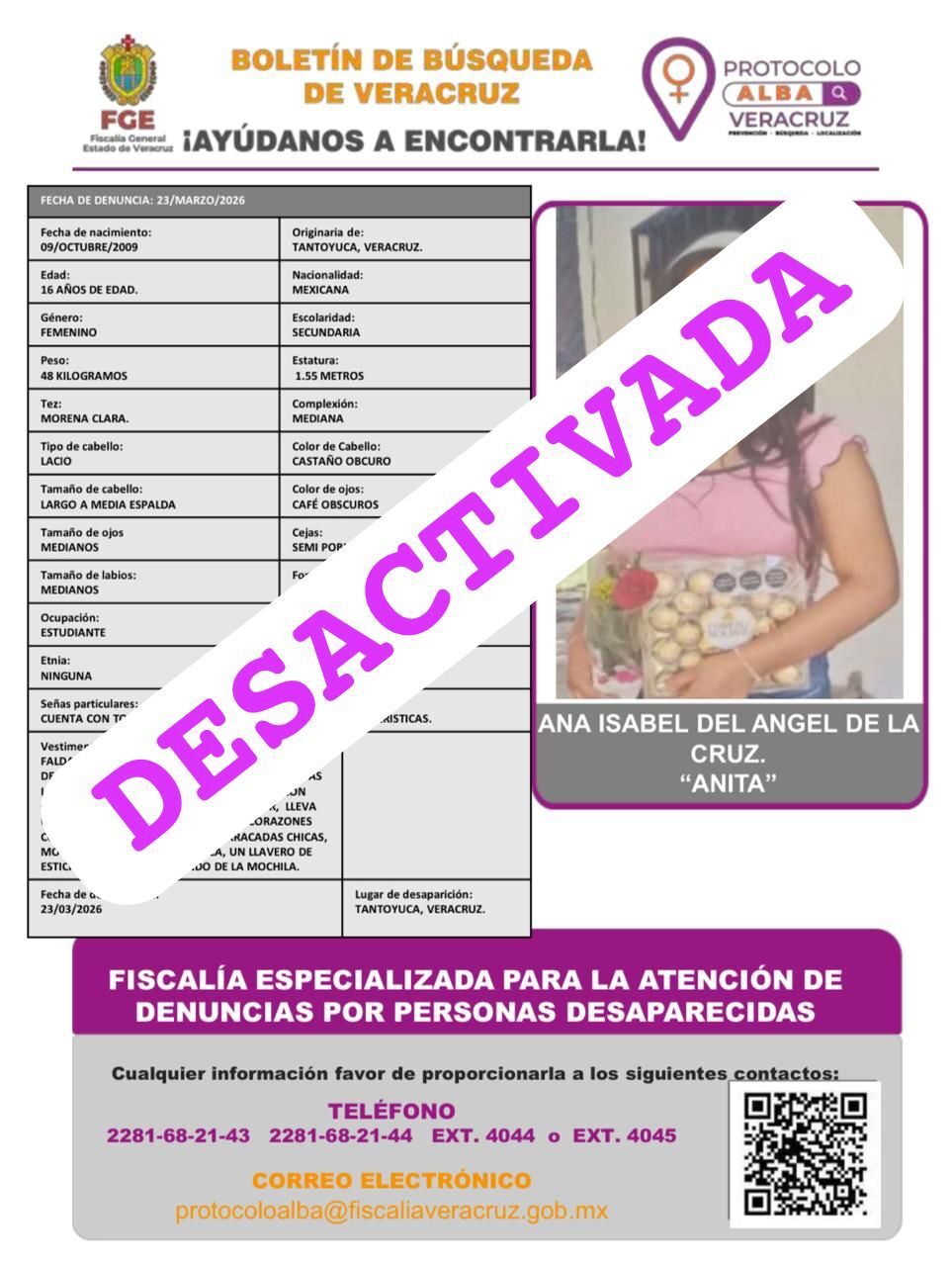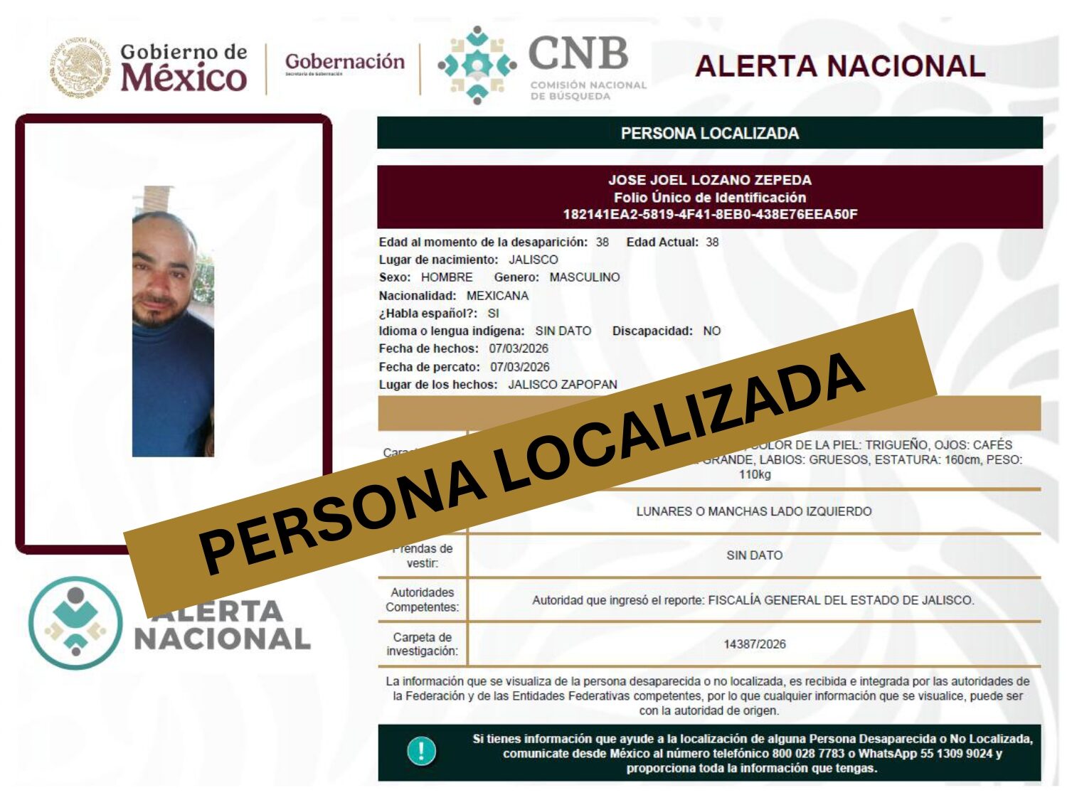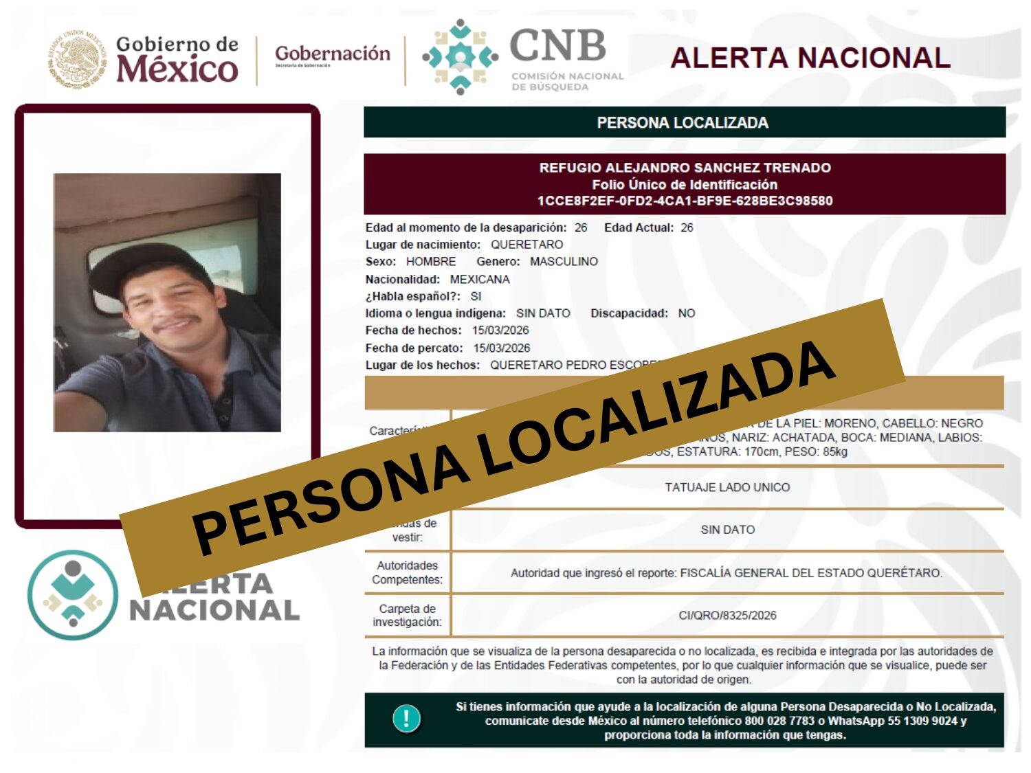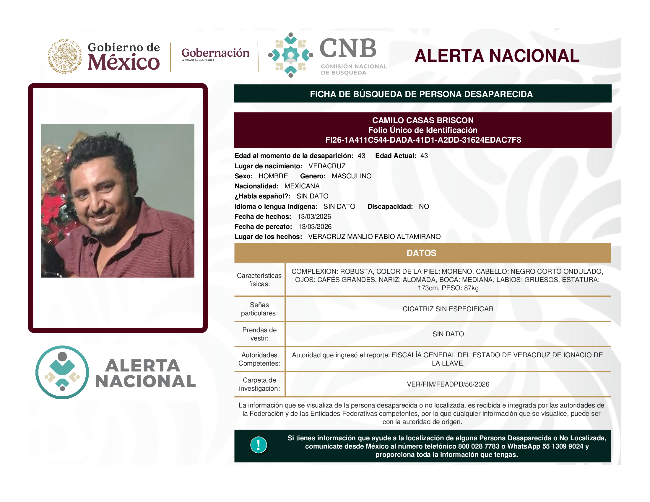 ALERTA NACIONAL DE BÚSQUEDA, LOCALIZACIÓN E IDENTIFICACIÓN DE PERSONAS DESAPARECIDAS Y NO LOCALIZADAS