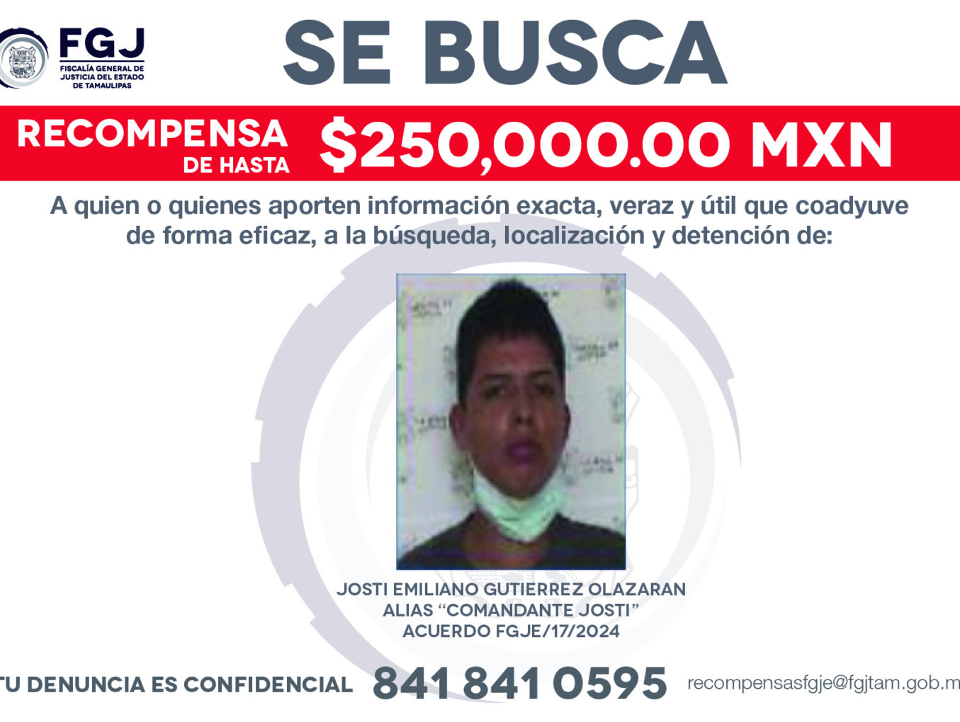 JOSTI EMILIANO GUTIERREZ OLAZARAN alias COMANDANTE JOSTI 11 marzo, 2025 Recompensas(Colaboraciones ) FGJE-17-2024 JOSTI EMILIANO GUTIERREZ OLAZARAN alias COMANDANTE JOSTI
