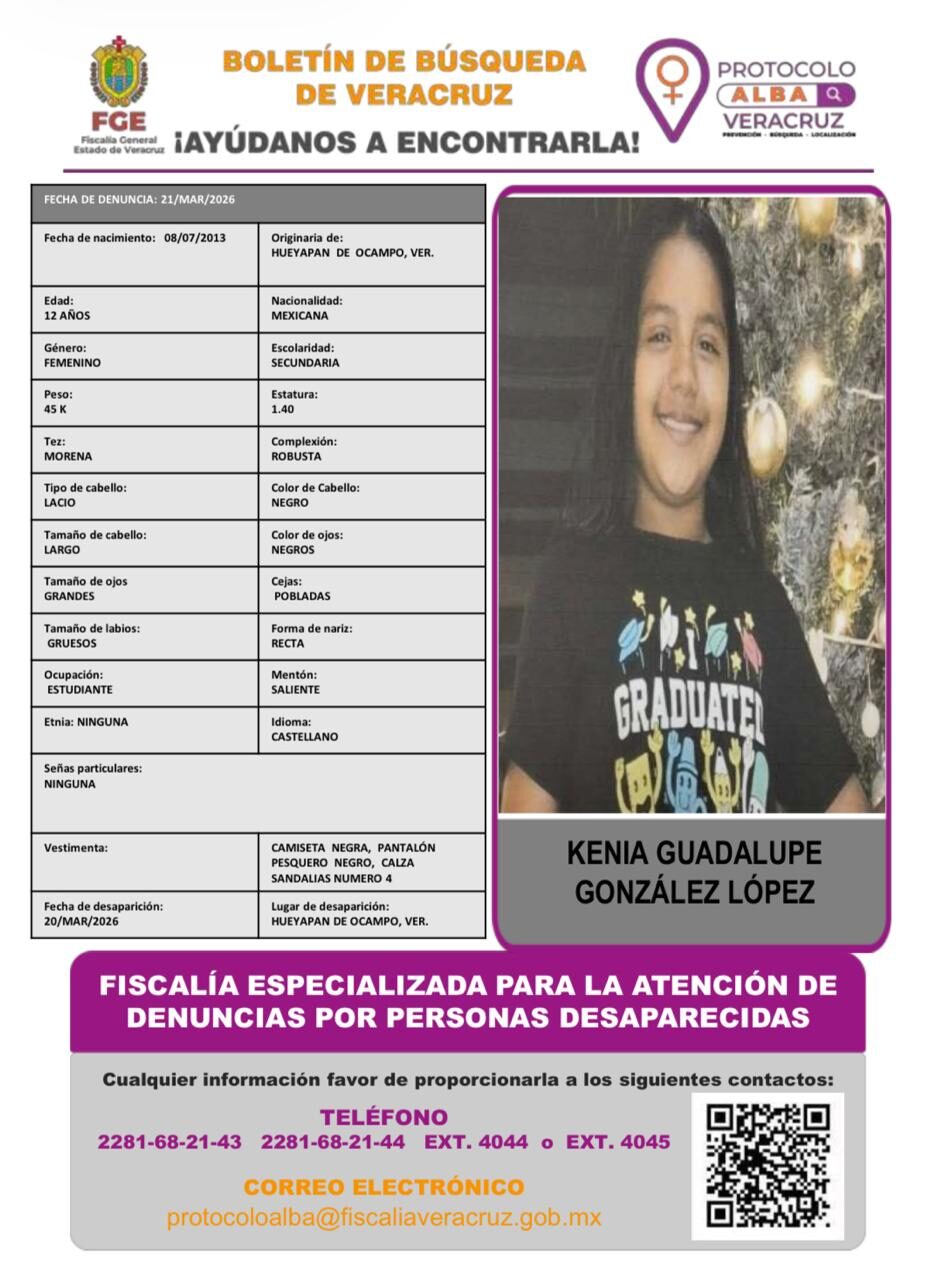 23 marzo, 2026 Página FGE protocolo alba Localizada