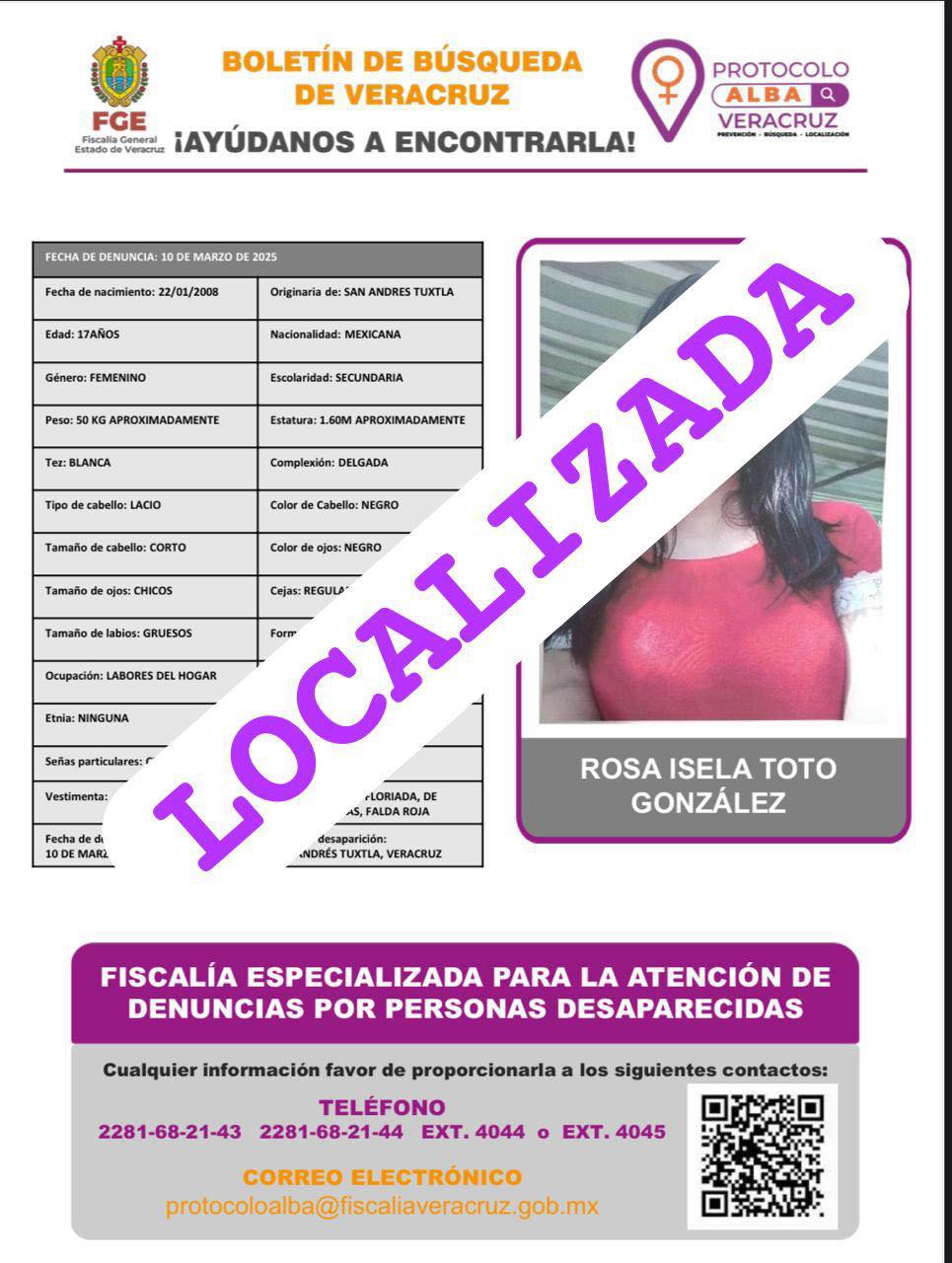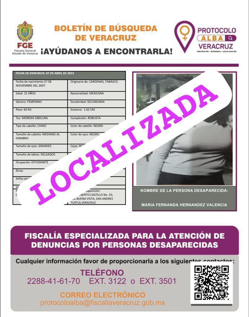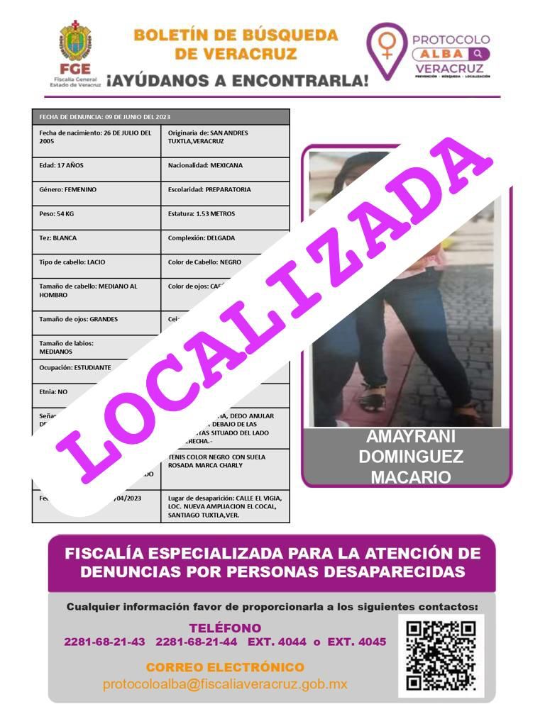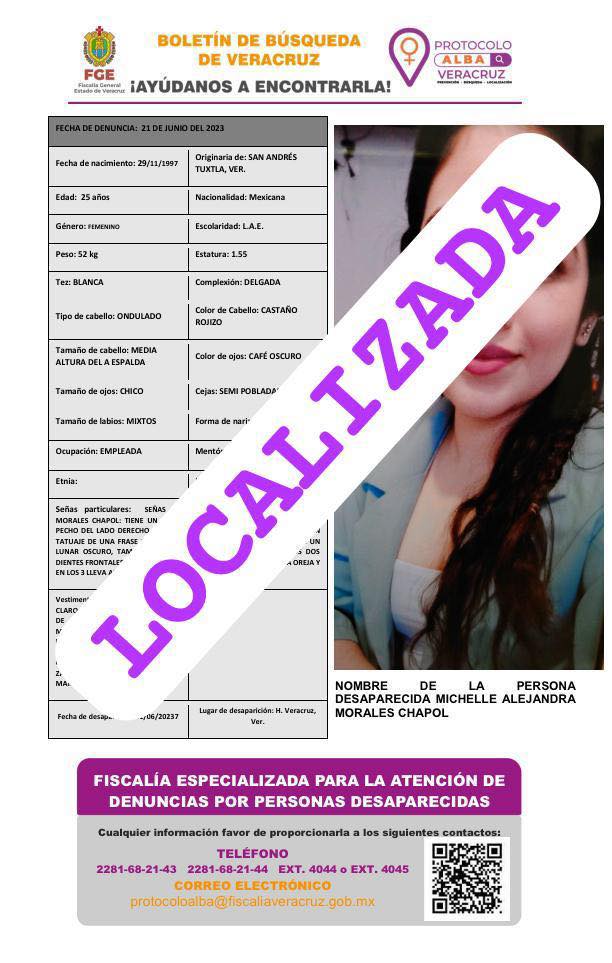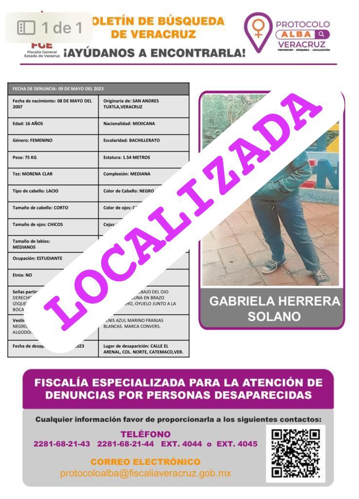 - Lugar Desaparición: SAN ANDRES TUXTLA, VER.