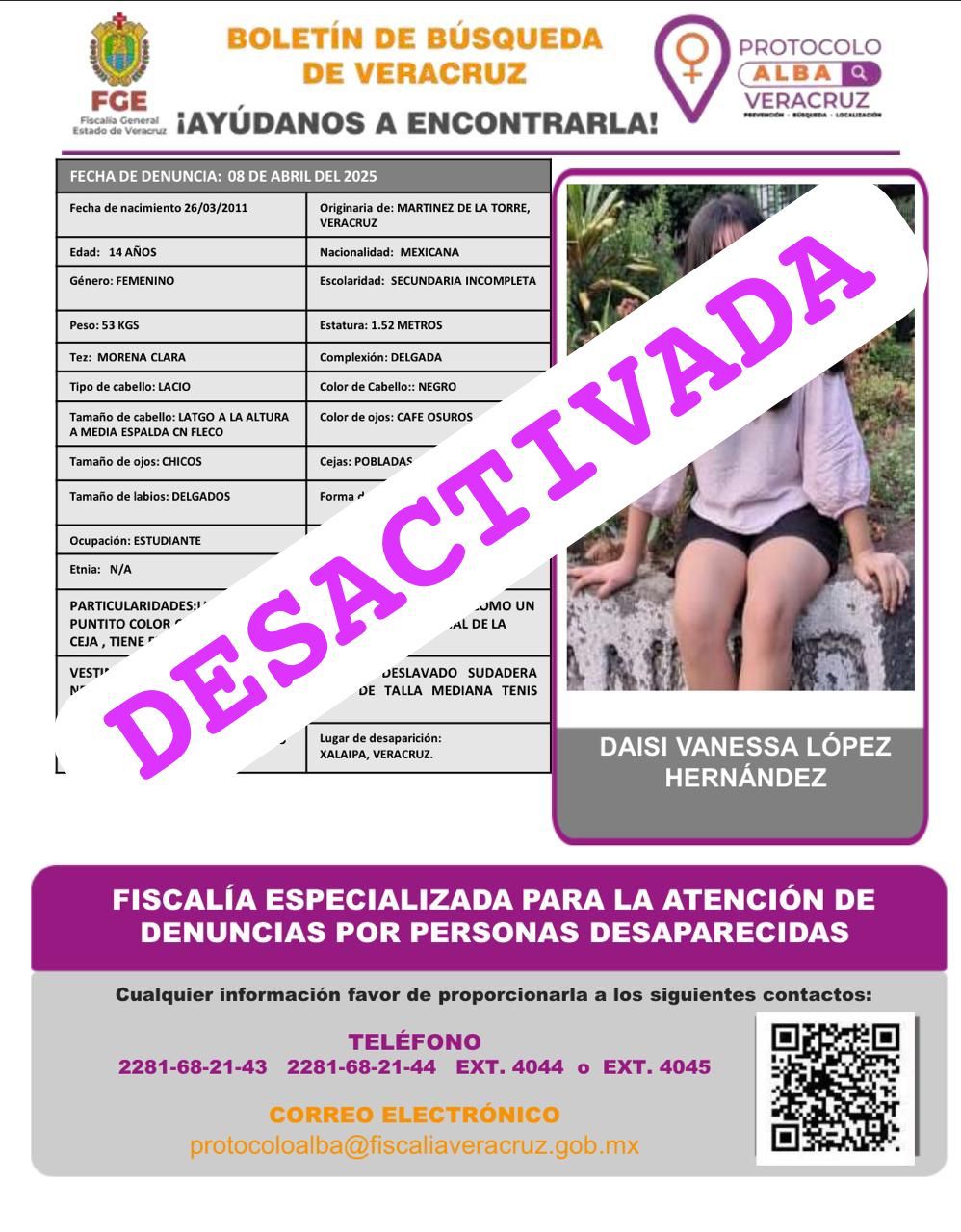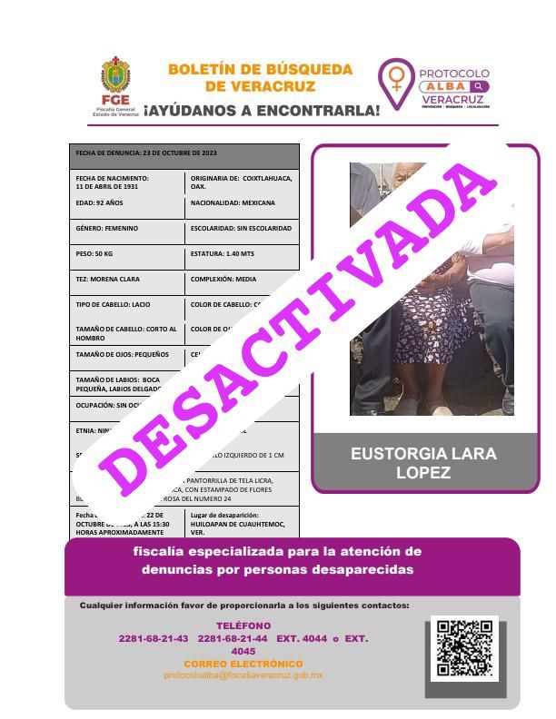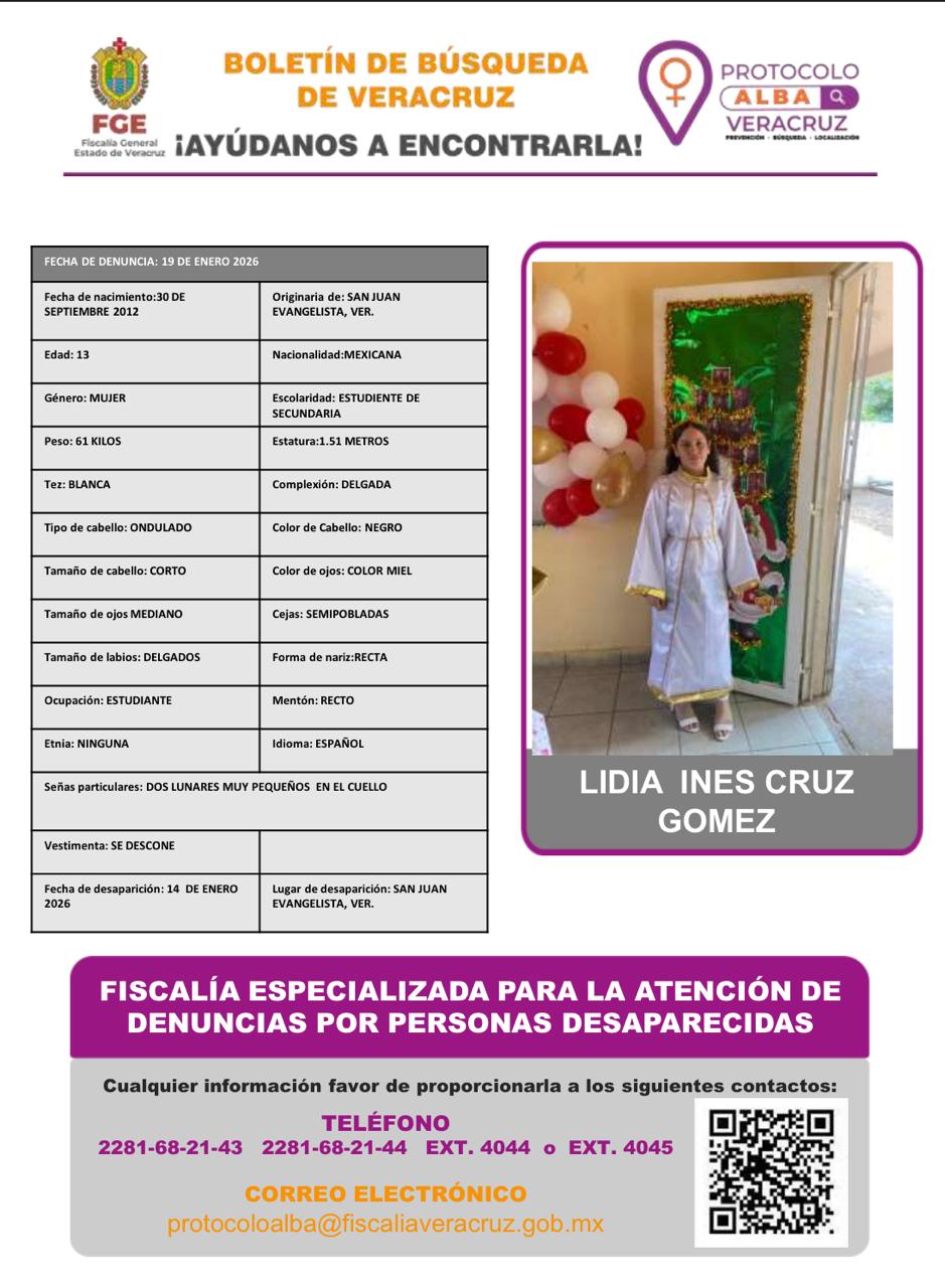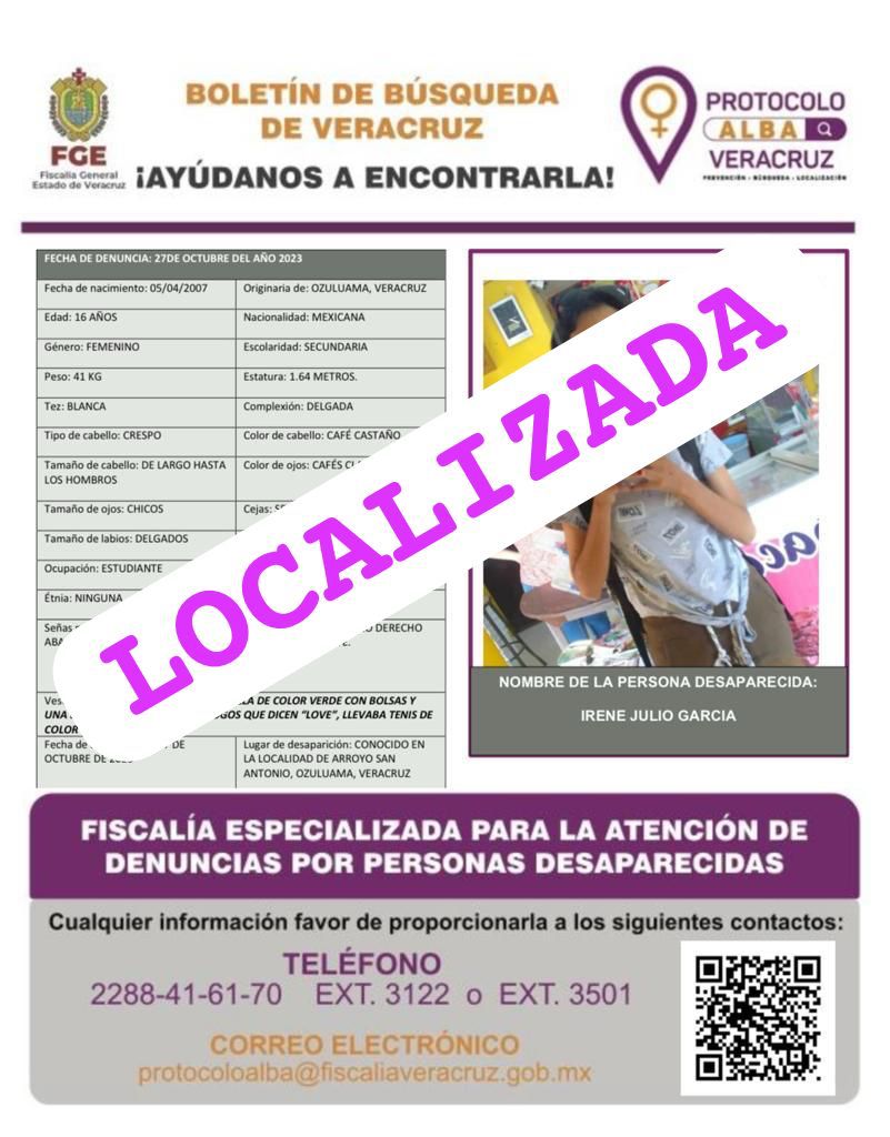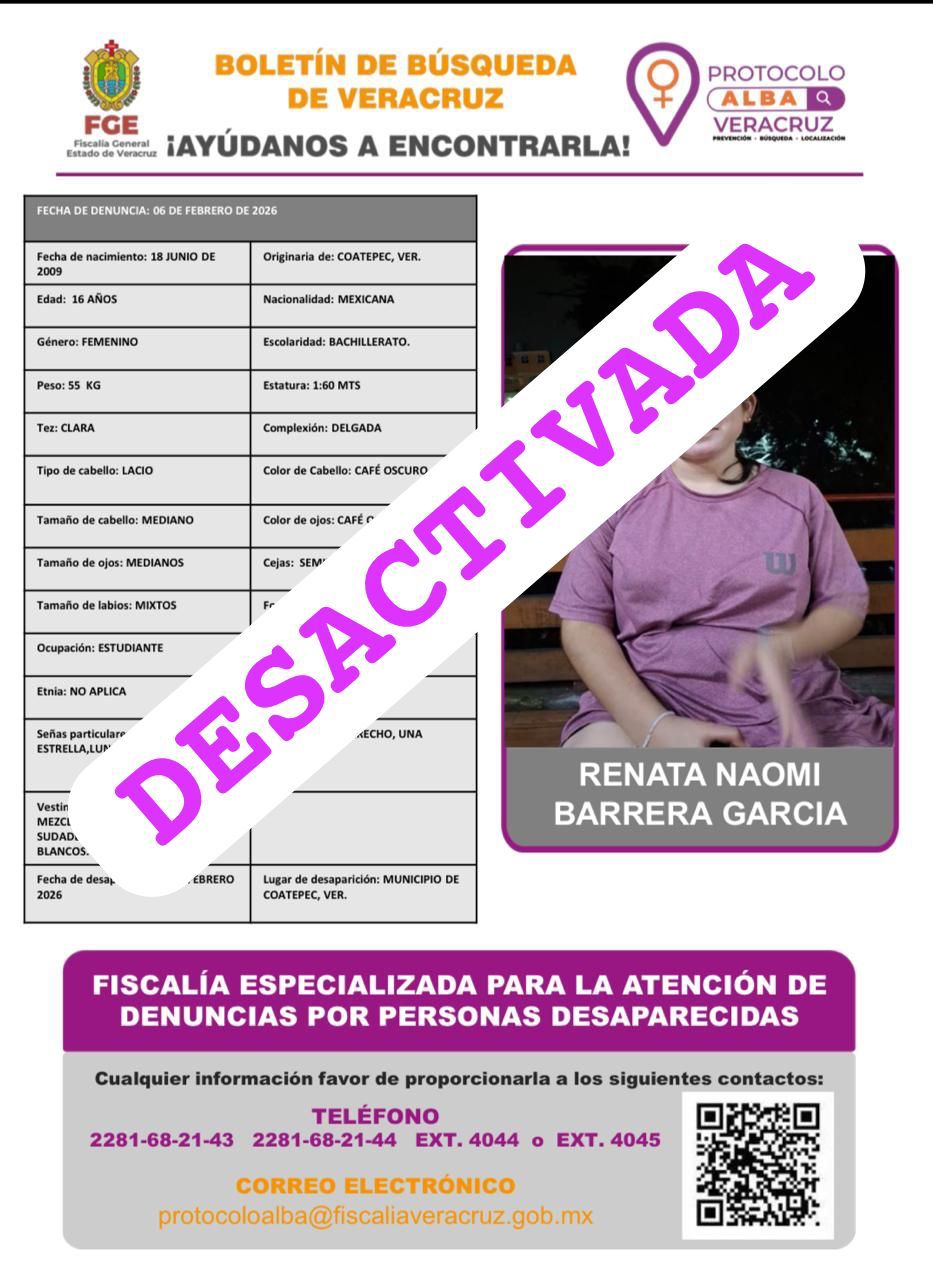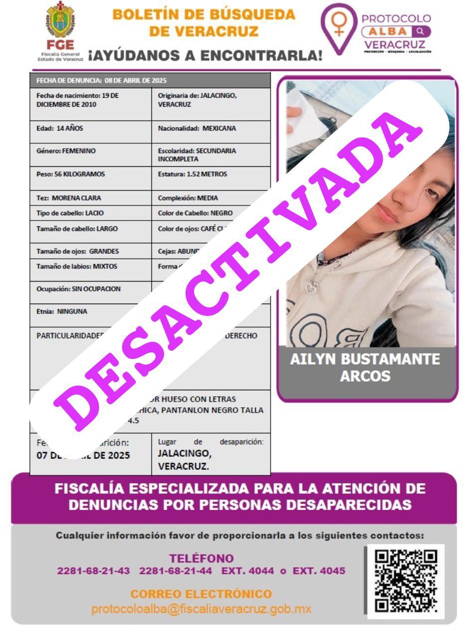 - Lugar Desaparición: XALAPA, VERACRUZ