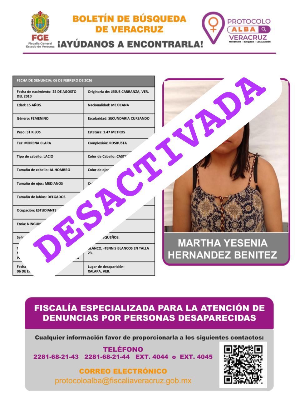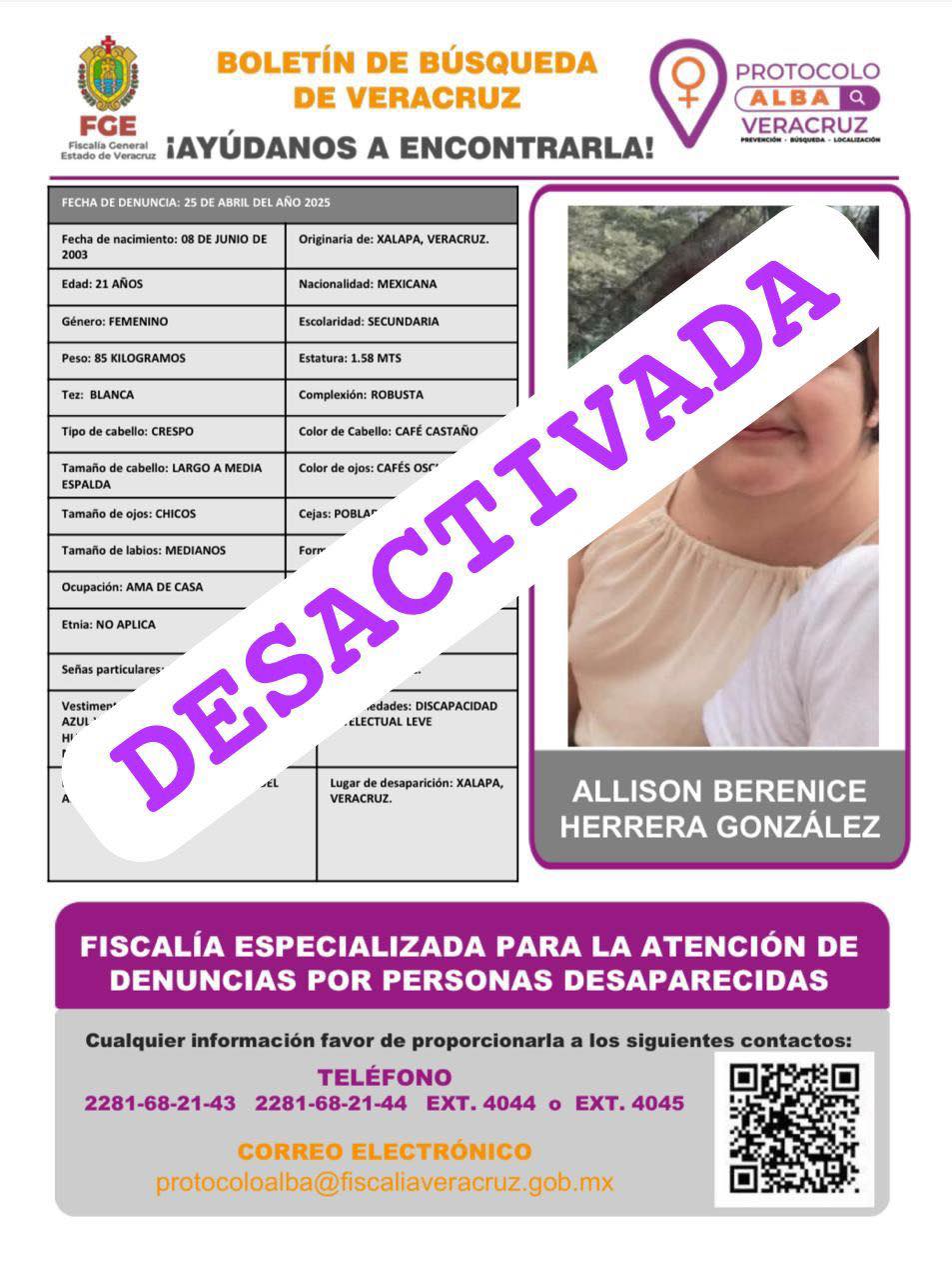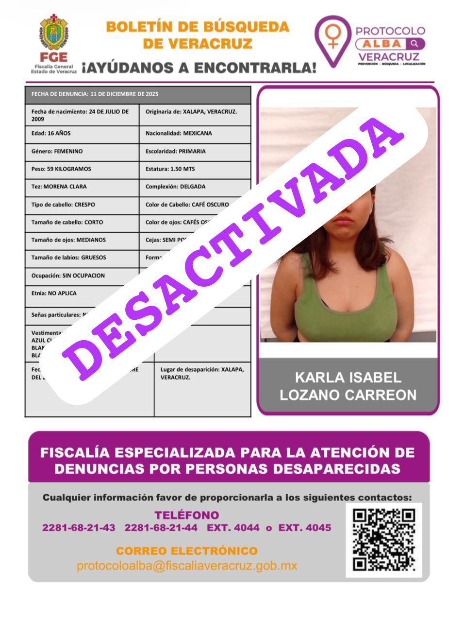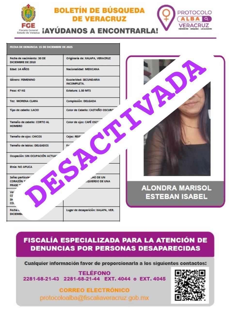 - Lugar Desaparición: XALAPA, VERACRUZ