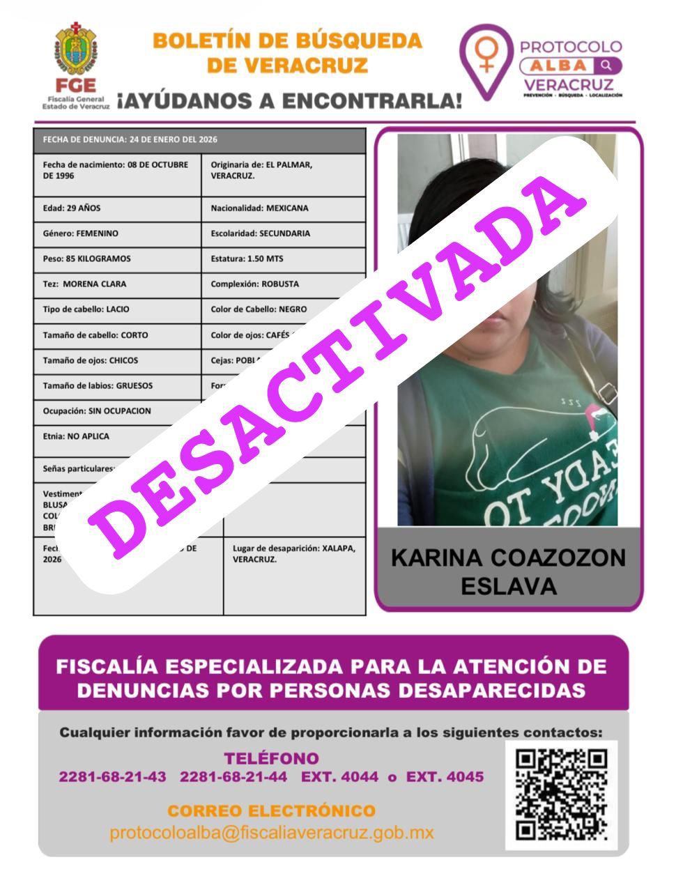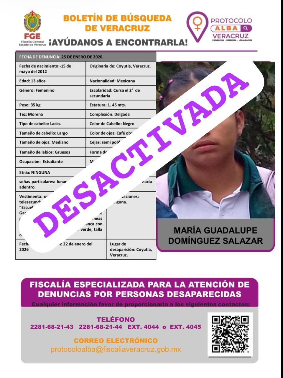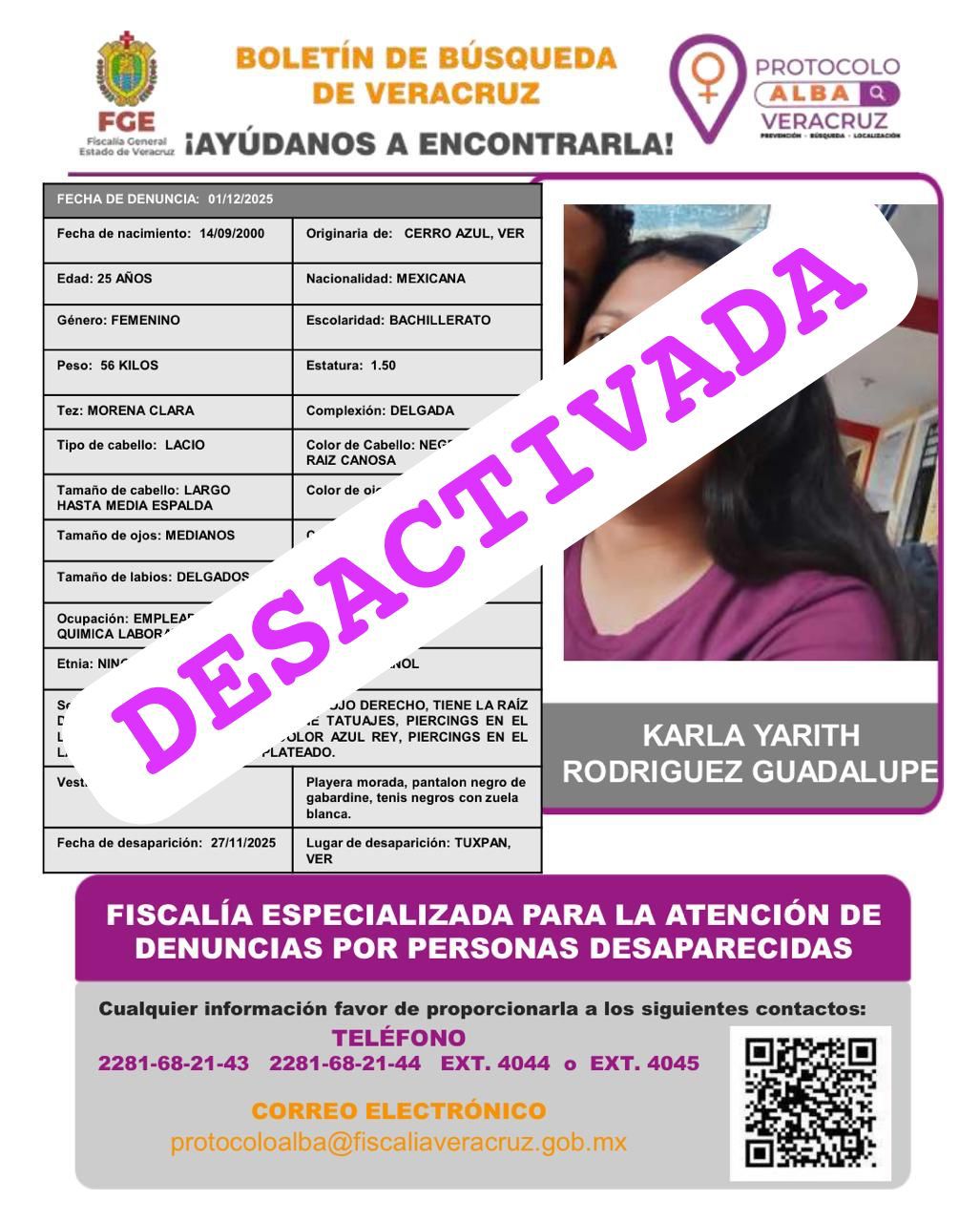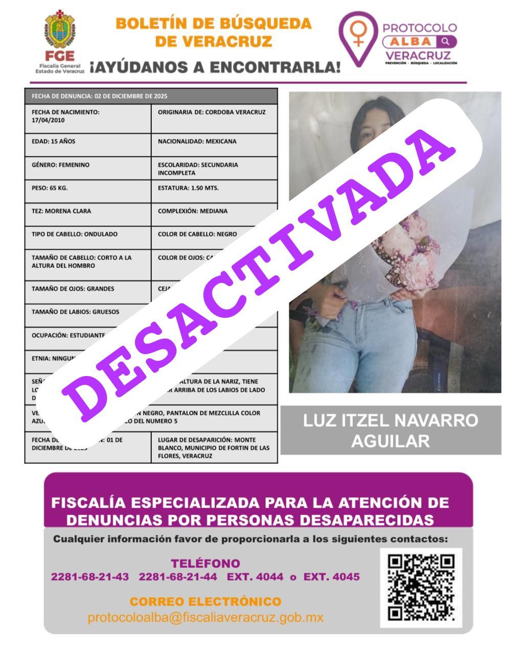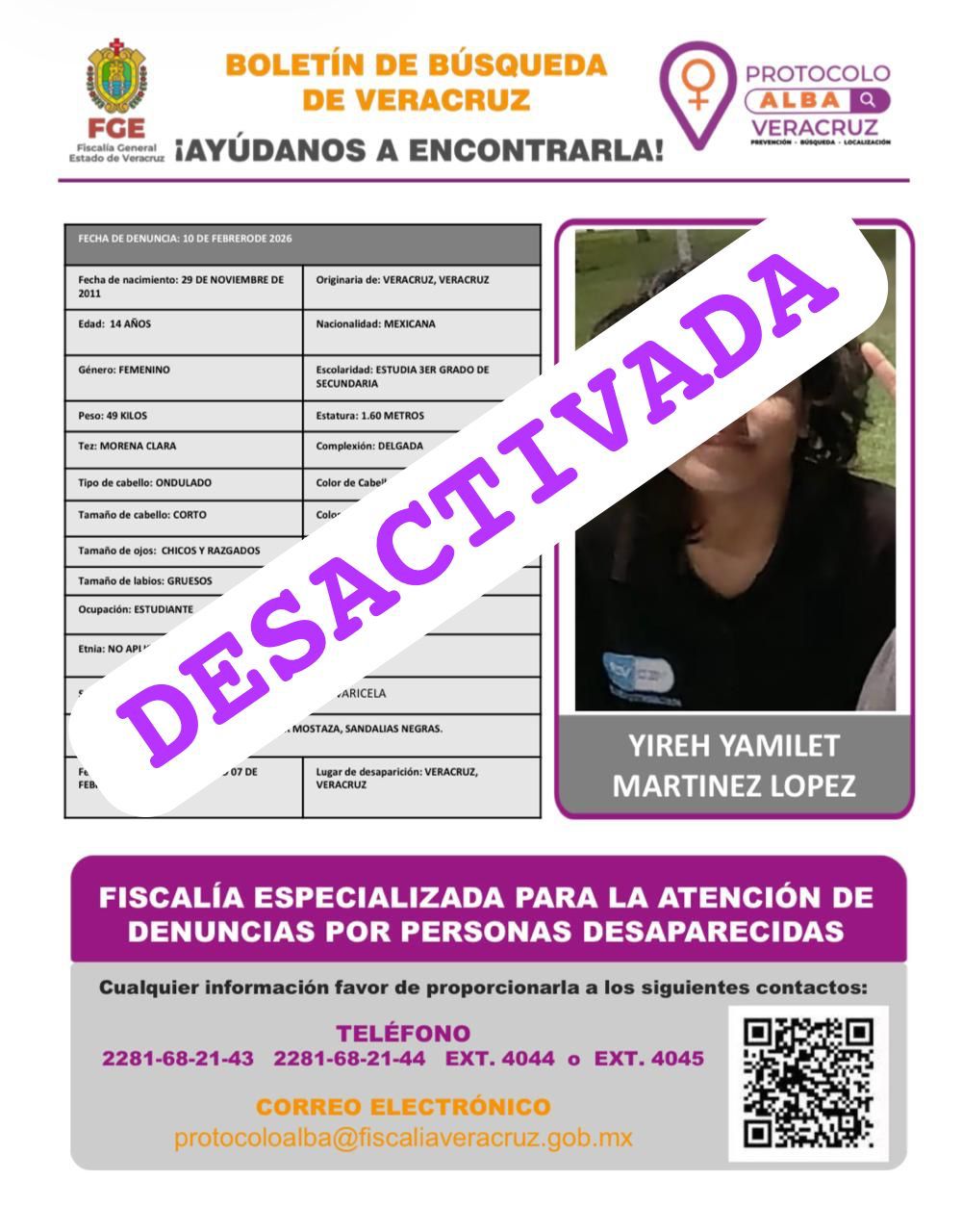 - Lugar Desaparición: XALAPA, VERACRUZ