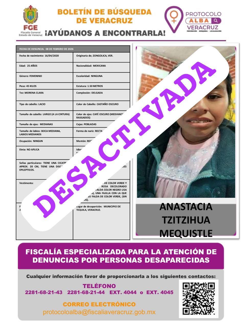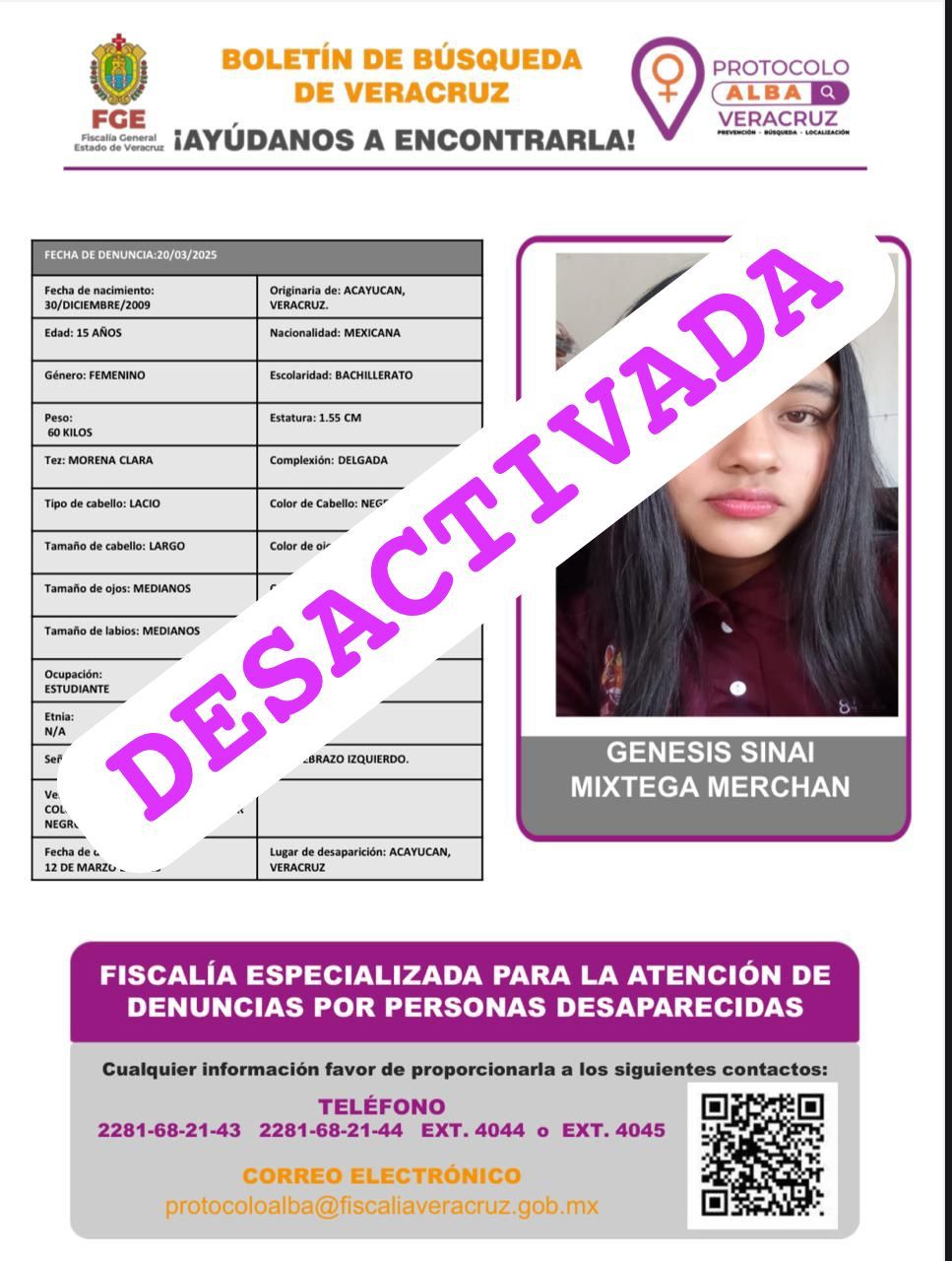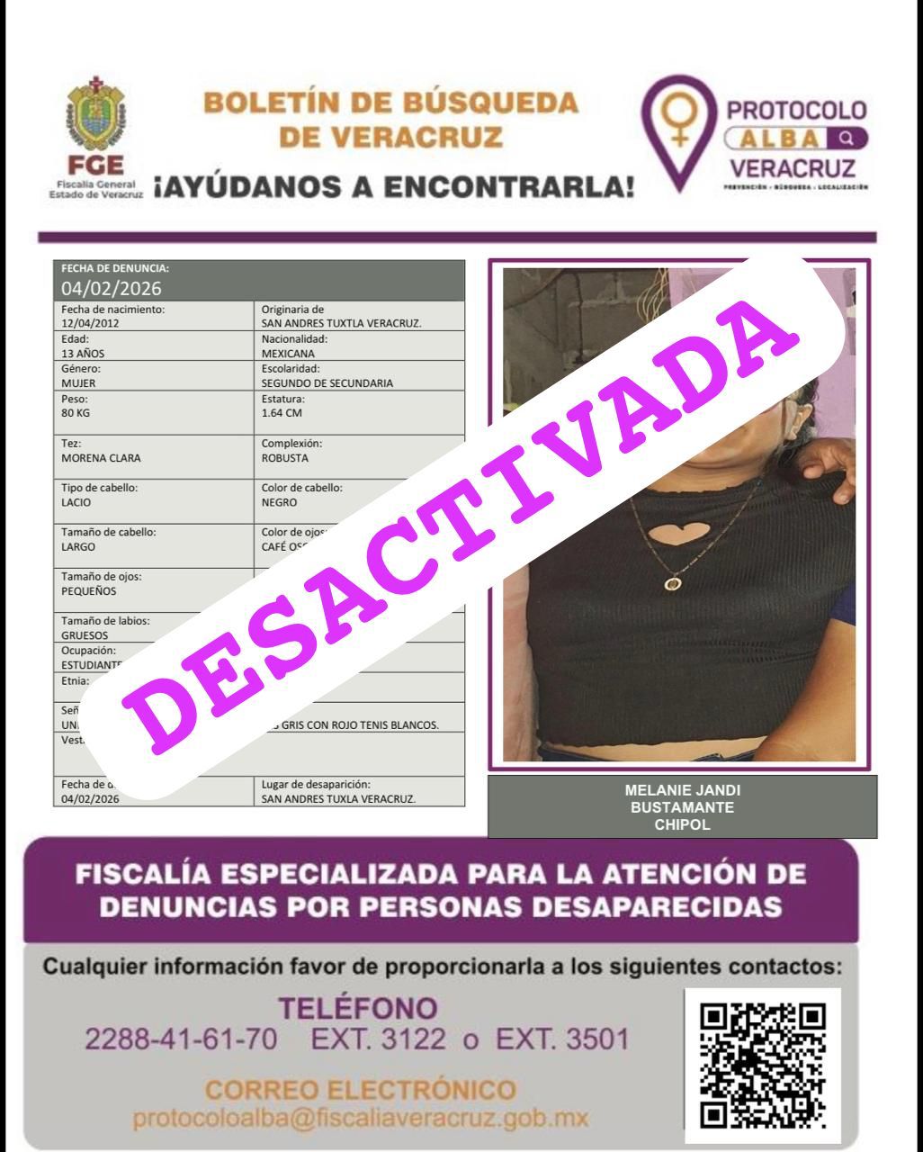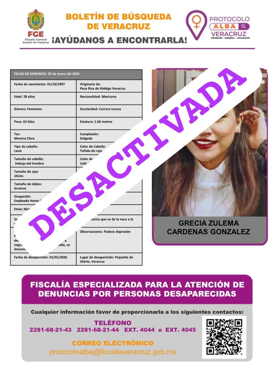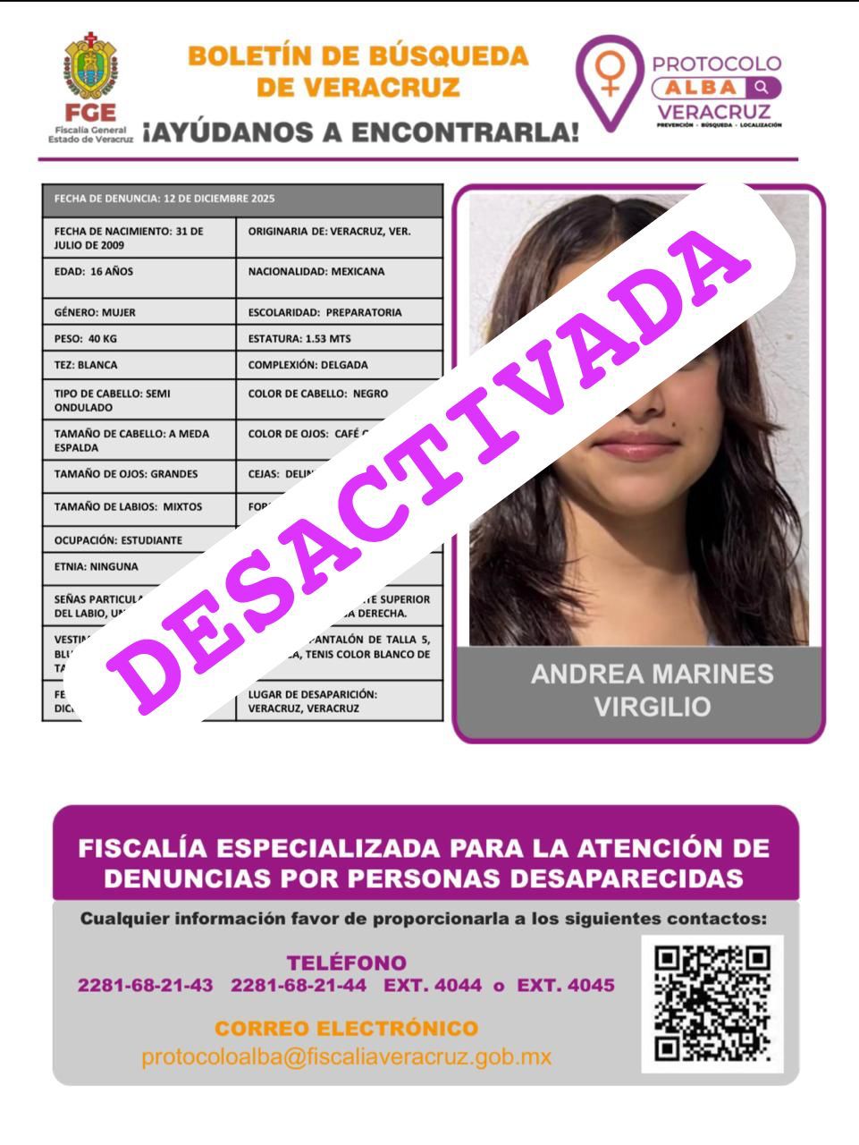 - Lugar Desaparición: XALAPA, VERACRUZ