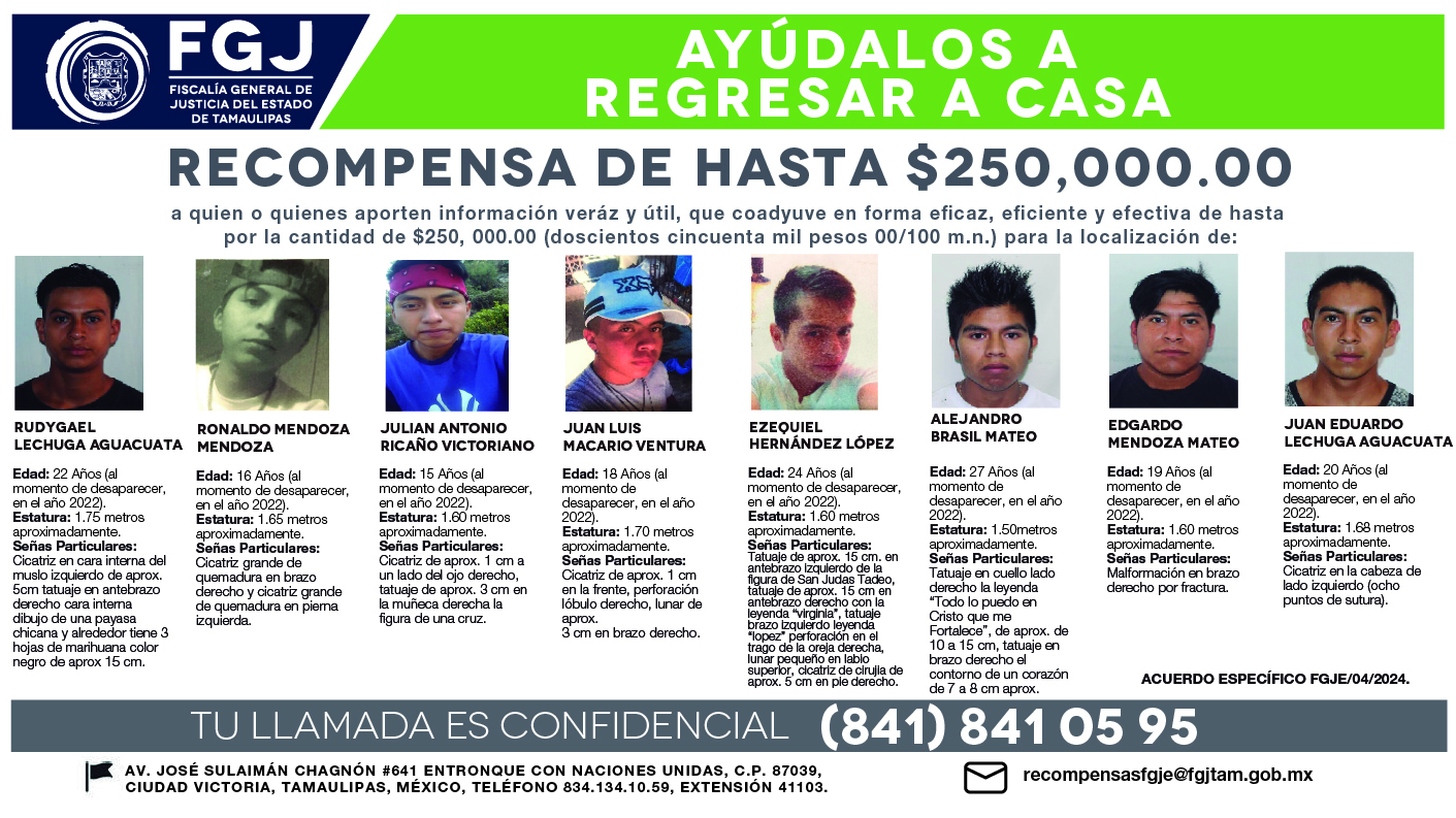 A quien o quienes proporcionen información veraz y útil que coadyuve eficaz, eficiente, efectiva y oportuna para la localización de las personas que a continuación se mencionan: